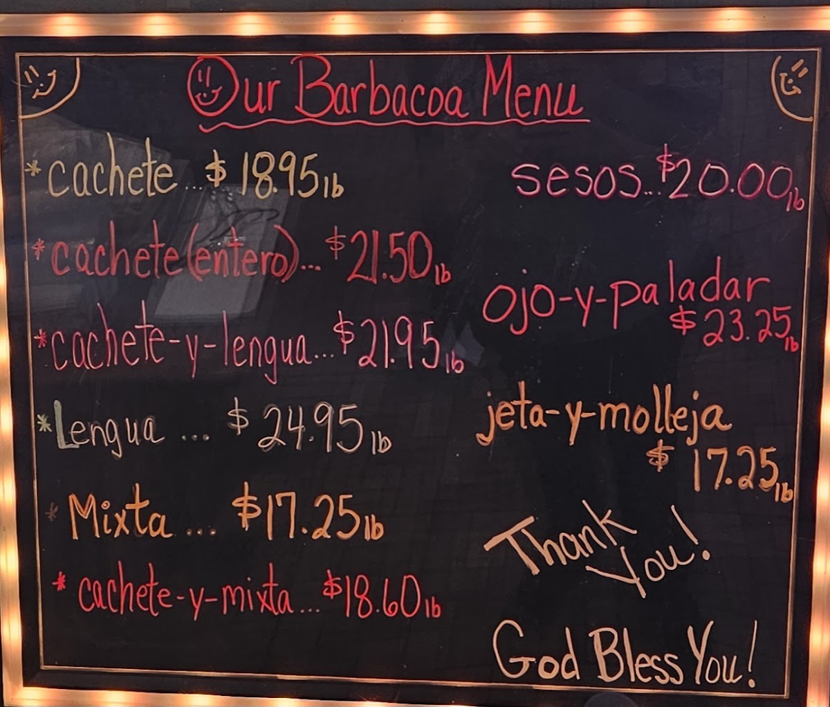 A pound of either jeta, molleja or both! The jeta is the part of the cabeza that is directly beneath the cachete. The molleja is right behind the jaw.