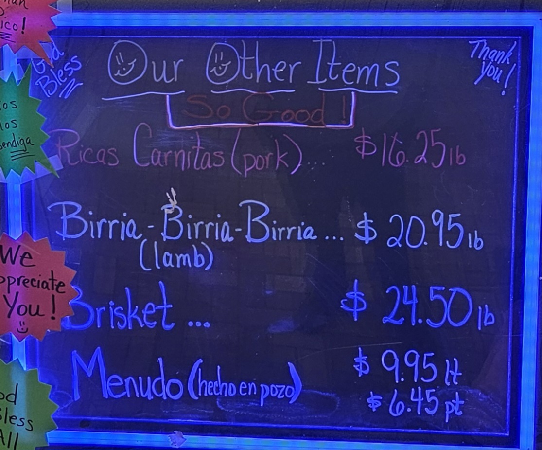 All the parts of the cabeza that are not the cachete, lengua, ojos, jeta, or paladar, chopped up finely. Perfect for someone who's not afraid of a little grasa!